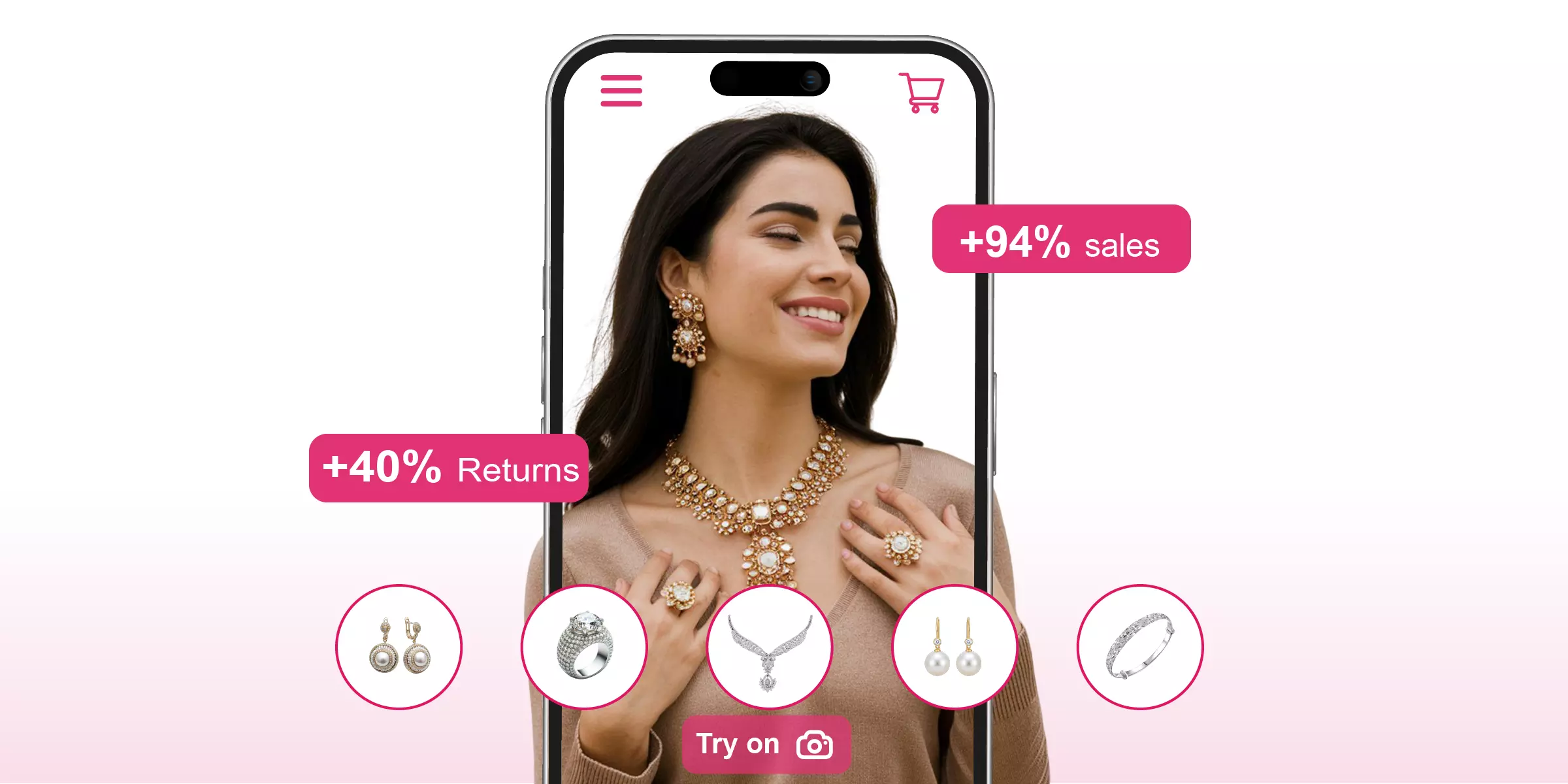 A virtual jewelry try-on helps an e-commerce business to provide its customers with better services and an enhanced shopping journey by enabling them to try different products in available sizes, colors, and styles, providing them with a lifelike experience and realistic visualization. According to various studies and reports, it is seen that using a virtual jewelry try-on helps businesses to reduce their product return rate by 20% by enabling customers to make more confident purchases during online shopping.