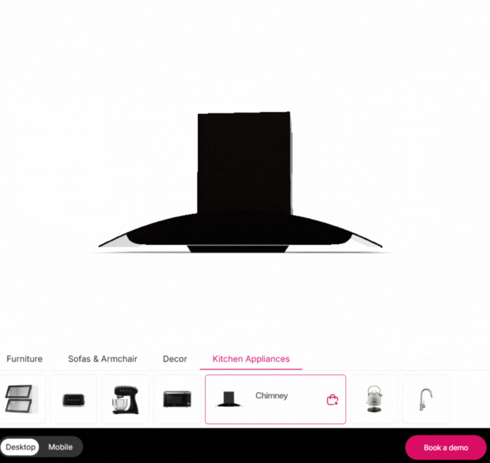 It is a SaaS tool produced by GlamAR's company to allow your customers to see your product from every angle with zoom and rotation to give a real view on your website. Not just this, it enables them to place the product in their real-time environment via their modern device’s camera that supports AR. Also, this is a high-tech digital visualization solution, which allows brands to present chimneys in full 3D and augmented reality (AR). It gives customers a chance to rotate, zoom, and view all the product details right on a website, including the vent design and the texture of its finish, and with the help of this feature, they can examine it in real life.