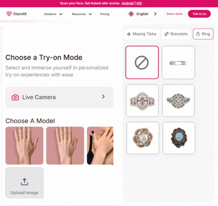 This is high-tech software created by GlamAR that can assist jewelry brands and internet shops to present their rings in a realistic, interactive manner. Rather than using two-dimensional image product displays, there is the creation of lifelike 3-dimensional illustrations of your jewelry that can be viewed by customers directly on their display screen. This viewer will enable your shopper to spin the product 360 degrees, zoom in on finer details, and see gemstones and metal finishes from every angle. Some of the elements of the ring represented on the 3D model can be previewed in real-time with the help of AR depending on the device and app performance. The AR will enable your buyers to wear the ring virtually using their modern devices.