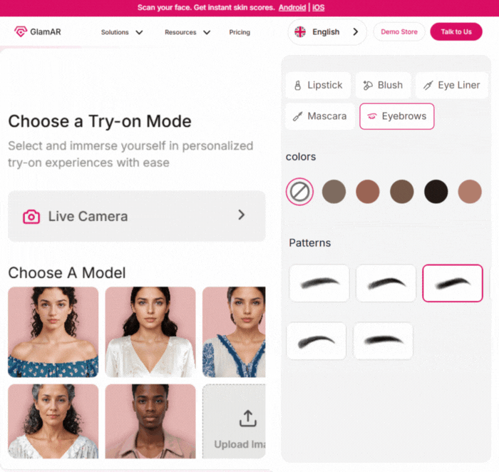 With the help of a 3D model and product viewer, brands can enhance their marketing strategies by using the eyebrow AR try-on as an innovative marketing tool that can help them set their brand apart by offering their customers an interactive experience that can be shared on social media, turning virtual sampling into user-generated marketing.