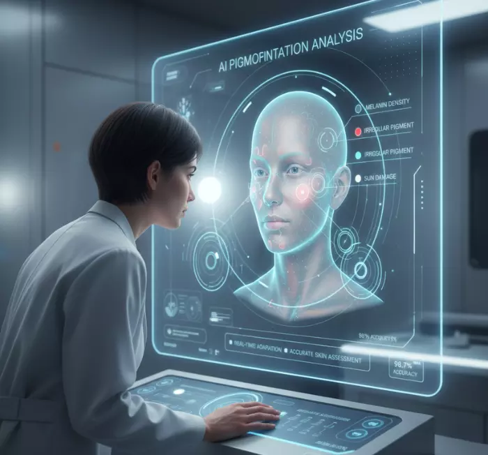 The AI skin analyzers scan various pigmentation features, including melanin concentration, color anomalies, patch depth, cluster of shadows, and variation of contrasts compared with the adjacent healthy skin. The system relies on computer vision to detect early hyperpigmentation and patches of melasma, and uneven distribution of tones and dark spots on UV. Sophisticated solutions are also able to provide the change throughout, providing brands and clinics with data on progressing treatment plans.